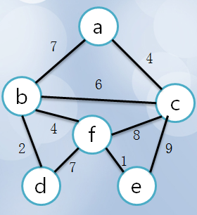 4、现在已选集合中有a,c,选择剩下的点中,离这两个最近的点。分别有7,6,8,9 所以选择6也就是b点加入集合(visit)同时将bc这条边加入最小生成树。