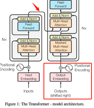 Decoder作用主要是根据encoder得到地特征A,结合输入的output embadding来得到分布B。它的网络是图1的蓝色框,由两层多头注意力网络和一层前馈神经网络组成。最下面那层多头注意力网络的输入是output embadding,上面那层的Q,K的输入是encoder得到的特征A,输入V是下面那层注意力网络的输出。